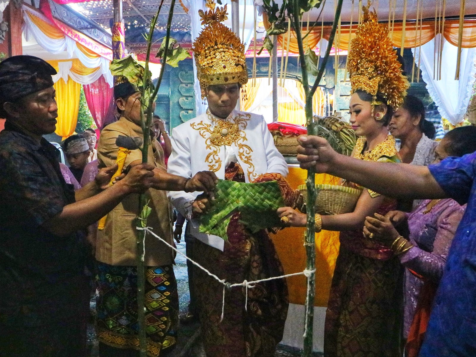 Dibuat dari 2 cabang dadap ditancapkan agak berjauhan dan keduanya dihubungkan dengan benang putih.